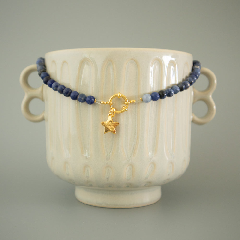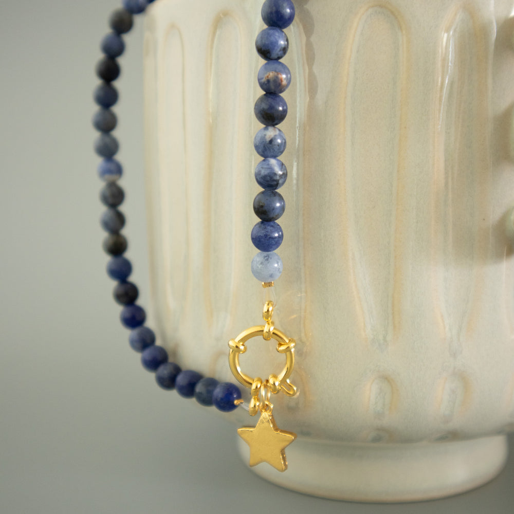 Descubre la sofisticación y el significado profundo de nuestro collar de sodalita con broche de bronce. Este elegante accesorio no solo complementa tu estilo, sino que también incorpora los poderosos beneficios de los cristales.