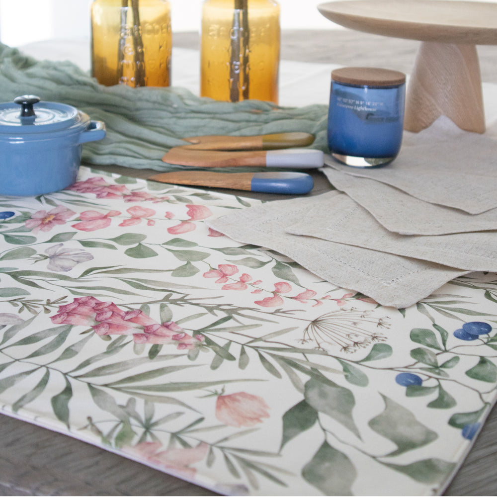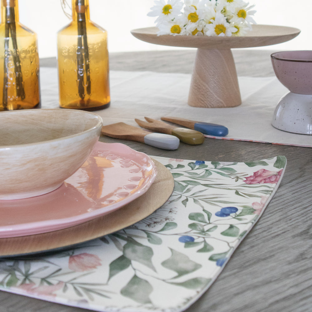 Individuales perfectos para embellecer y decorar tu mesa. Con un delicado estampado en tonos rosados y flores vibrantes, aporta un toque de naturalidad y elegancia a cualquier ocasión.