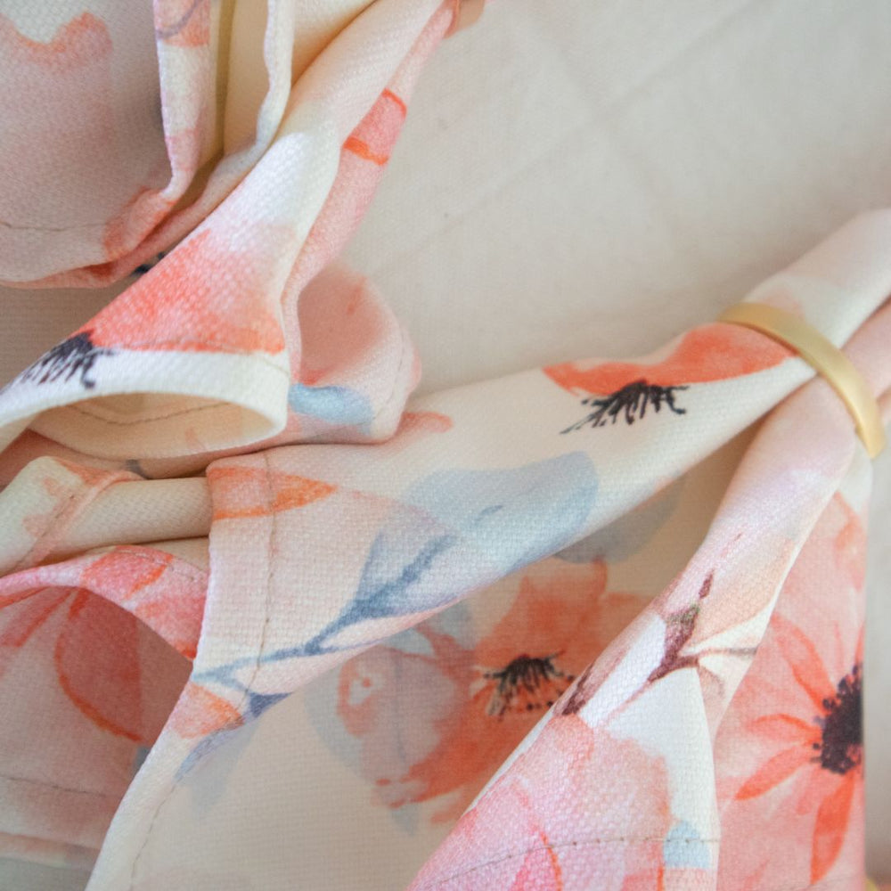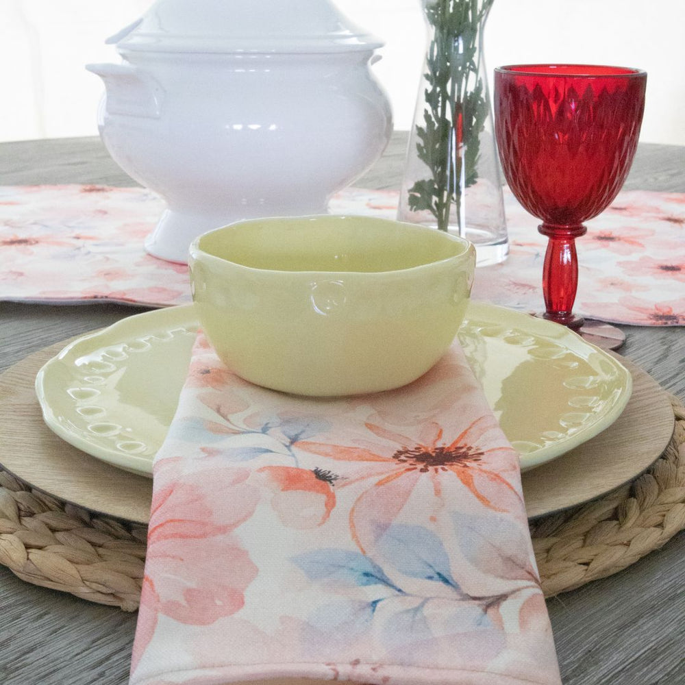 Servilleta de 35x35 cm, perfecta para embellecer tus desayunos, almuerzos, brunches e incluso cenas casuales. Con un delicado estampado en tonos rosados y flores vibrantes, aporta un toque de naturalidad y elegancia a cualquier ocasión.