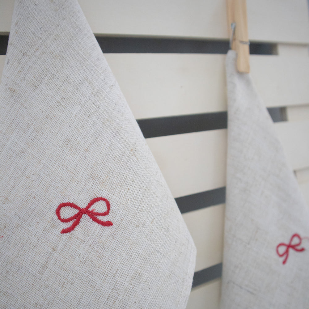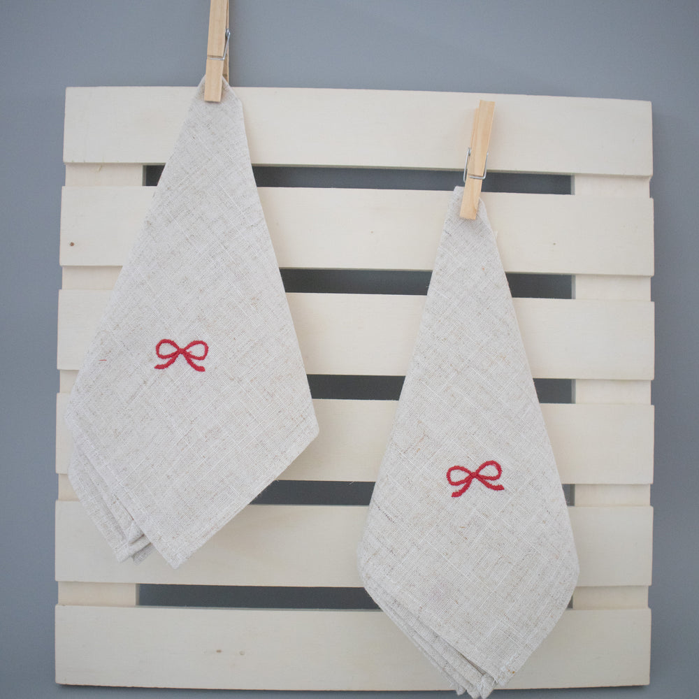 Descubre la elegancia y el cariño en cada detalle con nuestra servilleta de lino de 40x40 cm. Este delicado accesorio está adornado con un encantador bordado de moño, que aporta un toque de calidez y sofisticación a tu mesa. Perfecta para cenas especiales o para darle un detalle único a tu día a día.